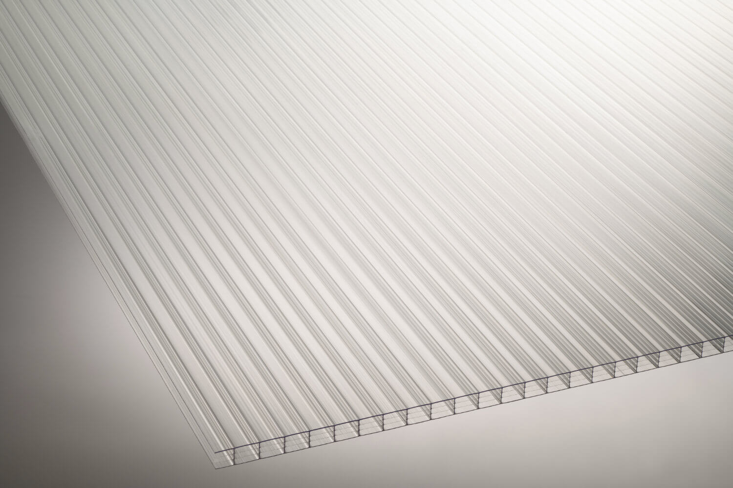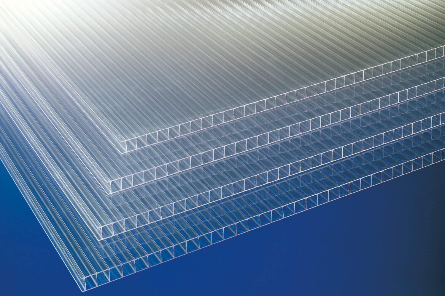 PC Multi-wall sheets are good insulators for sound and heat energies. PC hollow sheets have very good optical quality and are easy to handle and show an exceptional low and high temperature performance, from -40oC up to +120oC. They have excellent mechanical, thermal and electrical properties. Their impact strength is 250 times a more than glass & are almost unbreakable. They have good formability and their recycling is easy. As they are inflammable, they have found wide applications in the construction Industry. PC hollow sheets are resistant to most of the common solvents and chemicals.